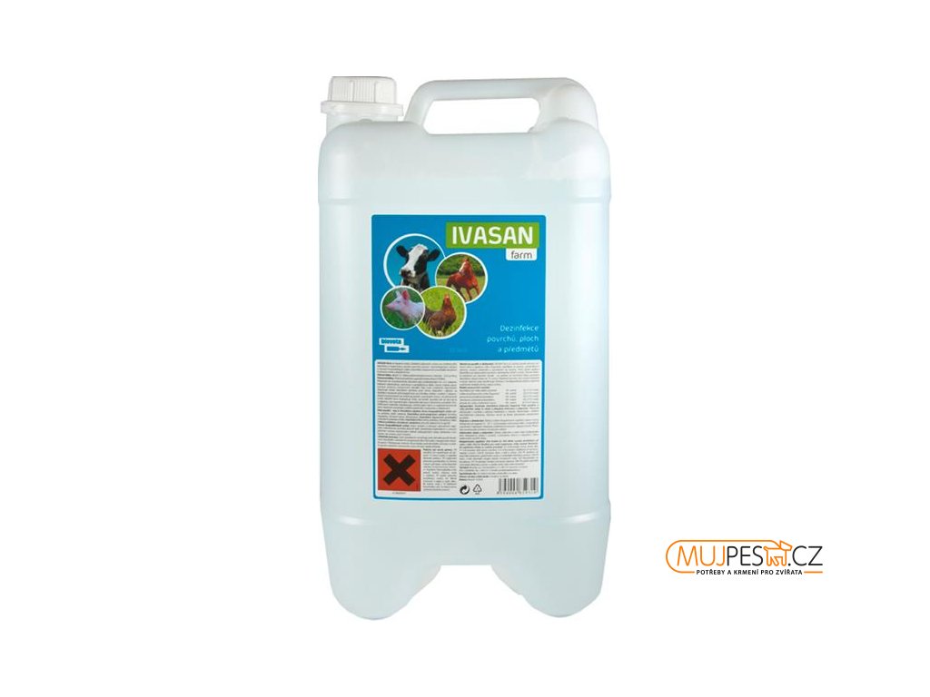 IVASAN Farm je nový dezinfekční vodou ředitelný přípravek určený pro dezinfekci a hygienickou sanitaci povrchů, prostor i technologických zařízení v chovech hospodářských zvířat a dezinfekci dopravních prostředků sloužících k převozu zvířat a skladišť krmiv.