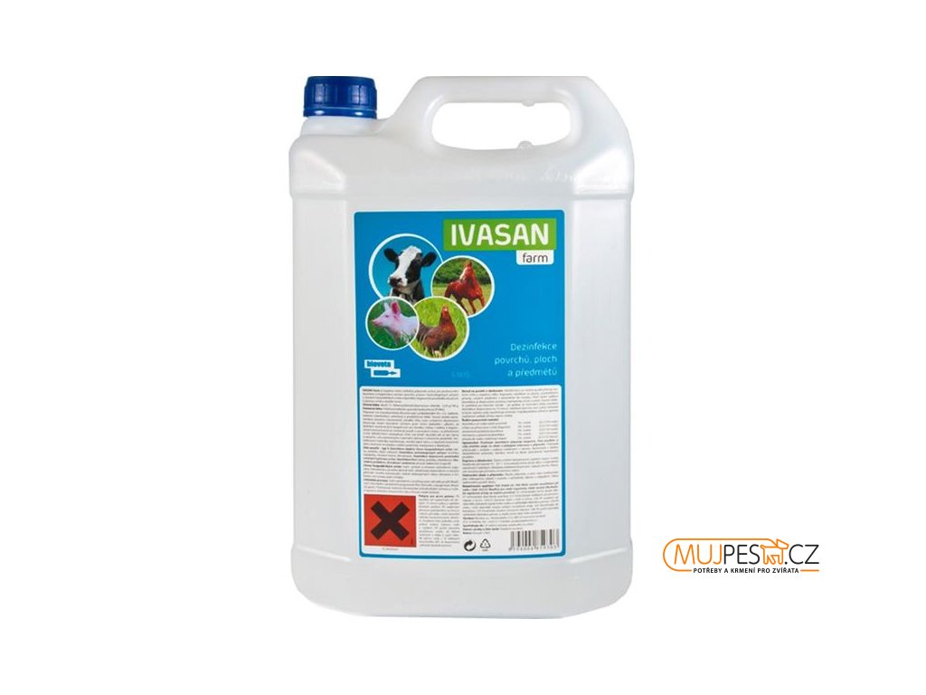 IVASAN Farm je nový dezinfekční vodou ředitelný přípravek určený pro dezinfekci a hygienickou sanitaci povrchů, prostor i technologických zařízení v chovech hospodářských zvířat a dezinfekci dopravních prostředků sloužících k převozu zvířat a skladišť krmiv.
