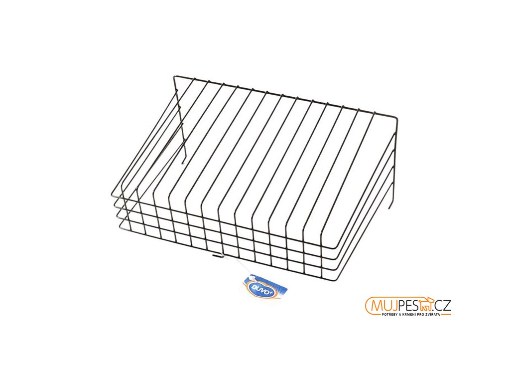 Jesličky na seno, zeleninu nebo další pamlsky s háky k zavěšení dovnitř klece. Zásobník je vyroben z pevných drátů a ošetřen kvalitní nezávadnou barvou.