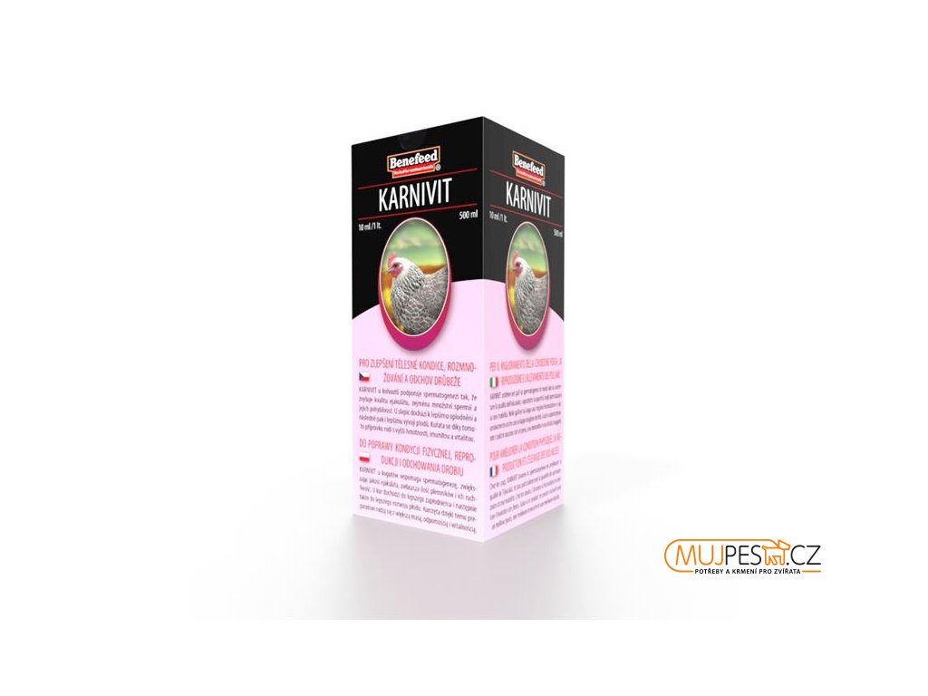 KARNIVIT obsahuje specifický komplex látek zlepšujících reprodukci drůbeže ve Vašem chovu. Všechny aktivní látky jsou ve formě, která zajistí maximální účinnost každé z nich.