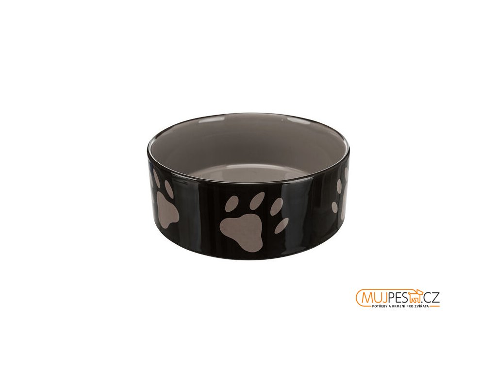 Keramická miska 1,4l/20cm - hnědá/tmavě šedá + motiv tlapky