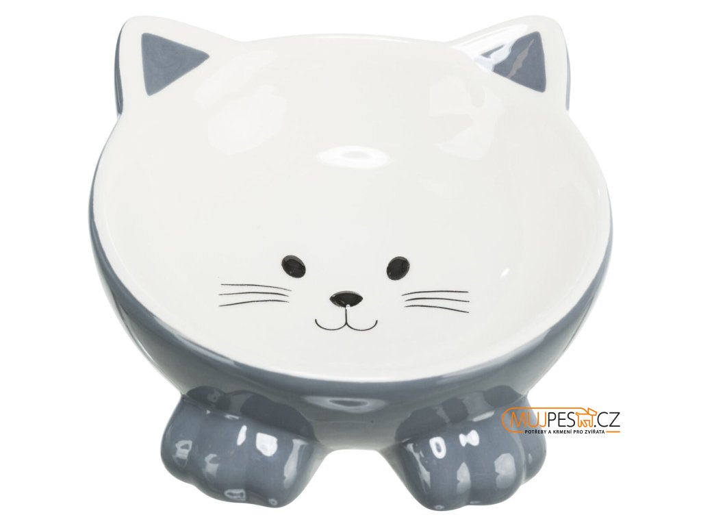 Keramická miska ergonomická 0.15 l/ø 14 cm, vyvýšená, tvar kočka
