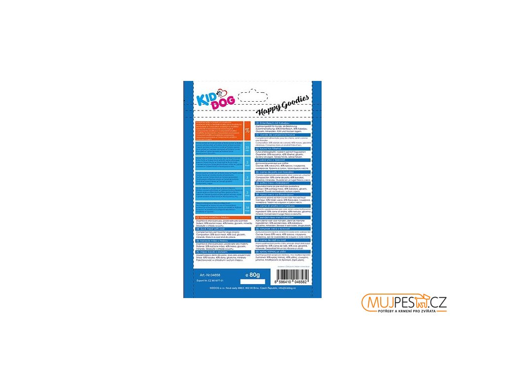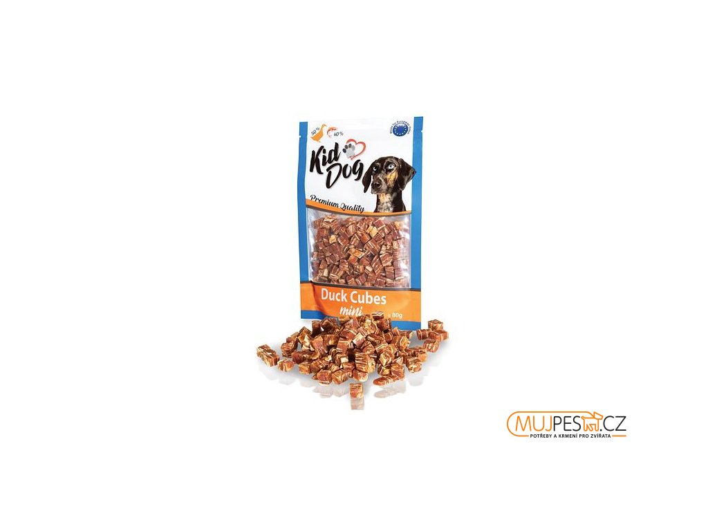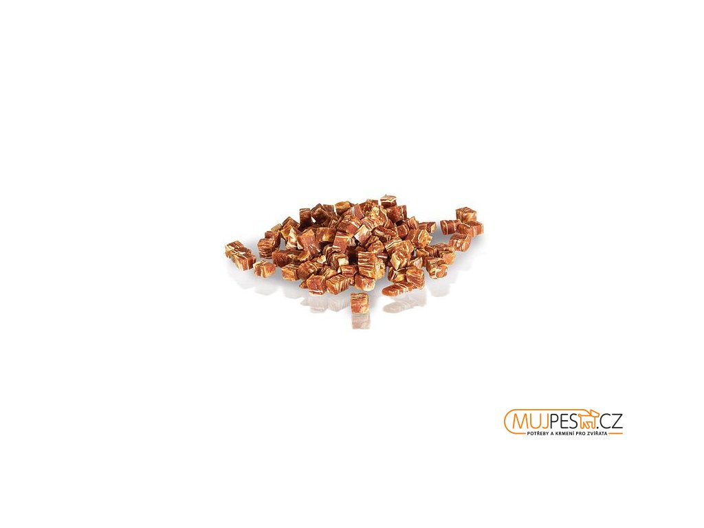 Pamlsek pro malá plemena ve tvaru drobných kostiček s vůní kachny a tresky.