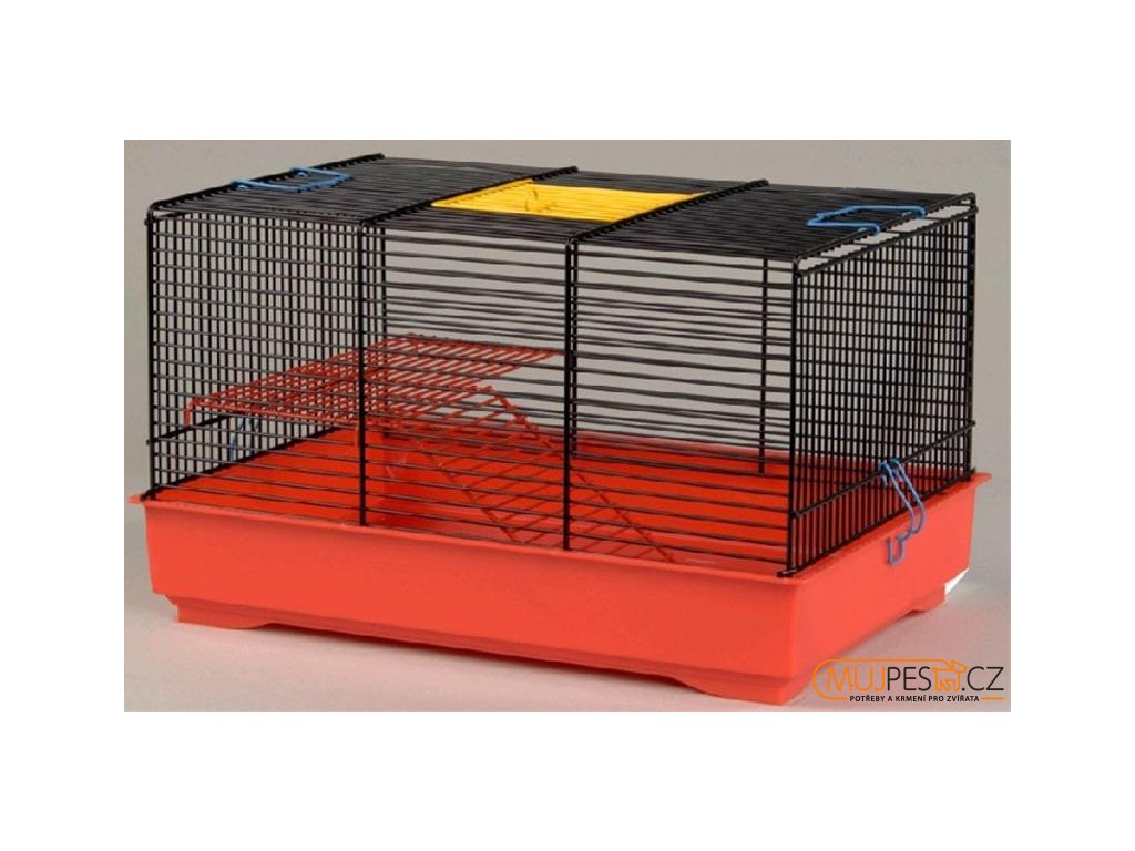 Klec s menší roztečí drátů a drátěným patrem vhodná pro myši a další drobné hlodavce.