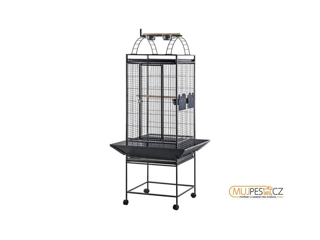Voliéra Helios pro papoušky ve stříbřitě šedé barvě vhodná pro malé a střední papoušky. Klec se dodává se stojanem a je vybavená kolečky, čímž je umožněna pojízdnost klece a spodními ochrannými bočními lištami proti znečišťování okolí klece. Nad klecí je instalováno sezení pro papouška s dvěma miskami. Spodní část klece je vysunovací pro jednodušší a pohodlnější čištění. Otvírání klece je v přední stěně.
