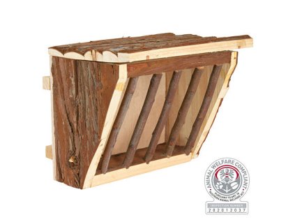 Karabinkový závěs na ovoce do ubikací malých hlodavců. Podobně jako v přírodě. Ovoce visí v prostoru a zvířátk si ho musí vydobýt.