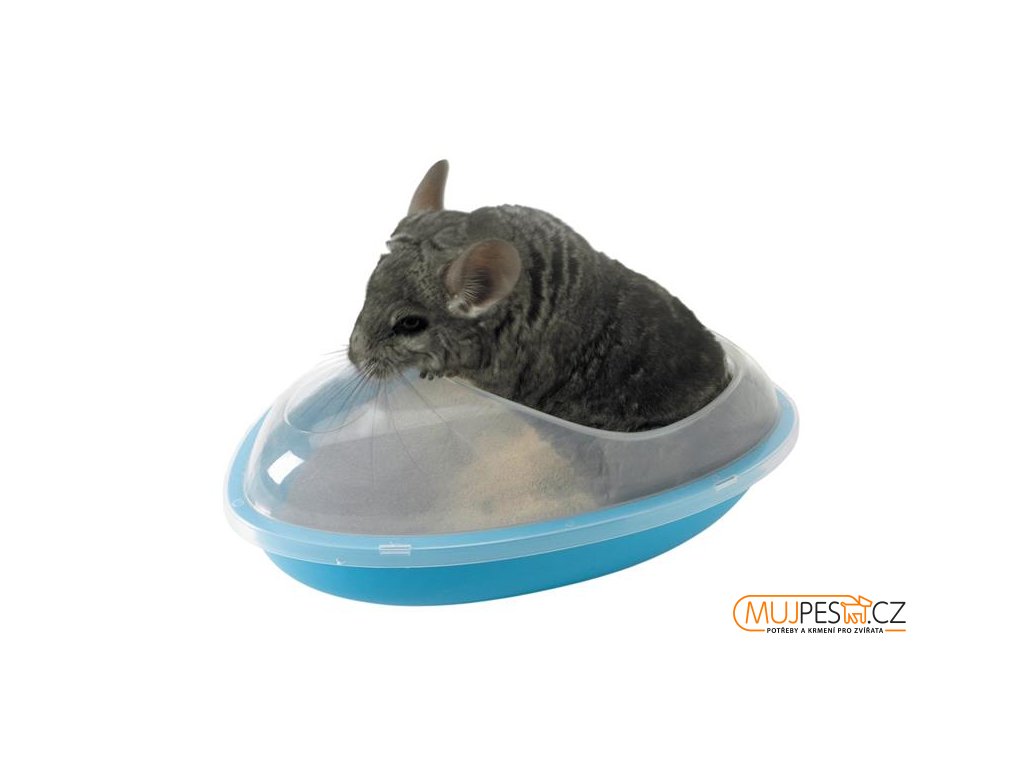 Popis: Plastová vanička opatřená krytem a vstupním otvorem. Pro správnou kvalitu a zdraví srsti potřebuje činčila pravidelné koupání v písku k tomu určenému. Výhodou této koupelny je kryt, který zamezí vyhrabávání písku. Proto můžete koupelnu ponechat stále v ubikaci a činčila jí může kdykoliv použít. Nezapomeňte však na pravidelnou údržbu (prosévání a zbavování nečistot) a výměnu písku.