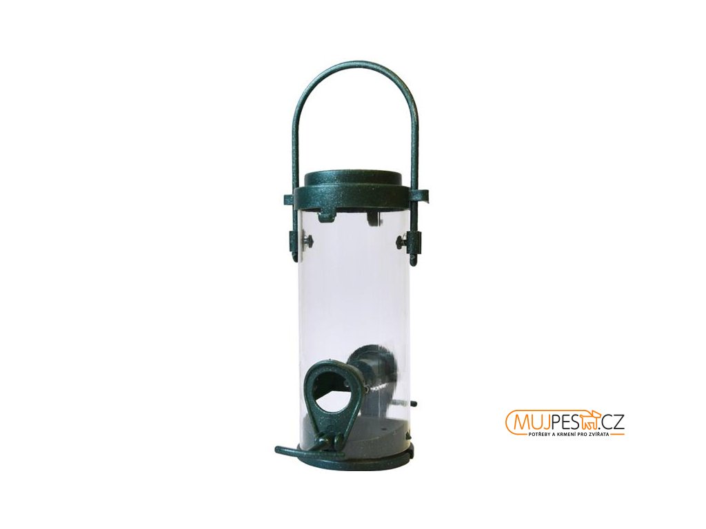 Plastové krmítko vyrobené z recyklovaného plastu pro snadné krmení volně žijícího ptactva krmítkovou směsí.
