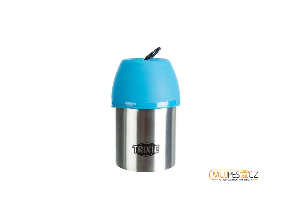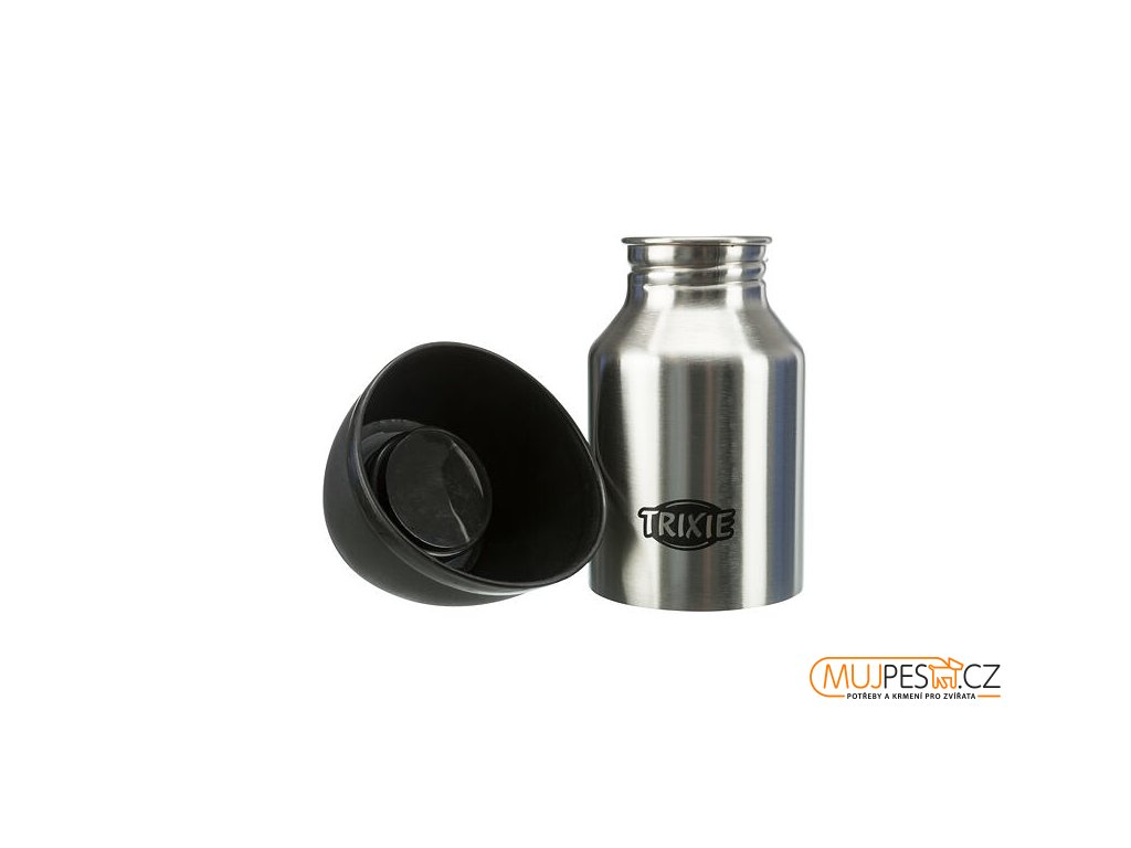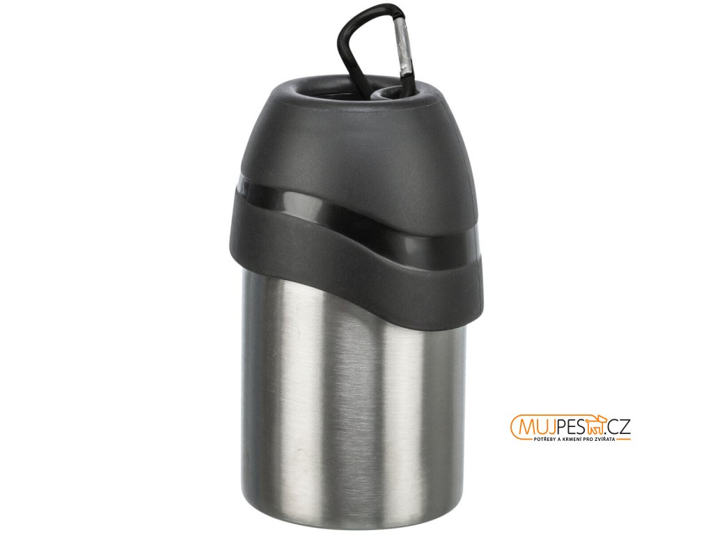 - praktická a odolná cestovní láhev se širokým hrdlem na vodu nebo suché krmivo