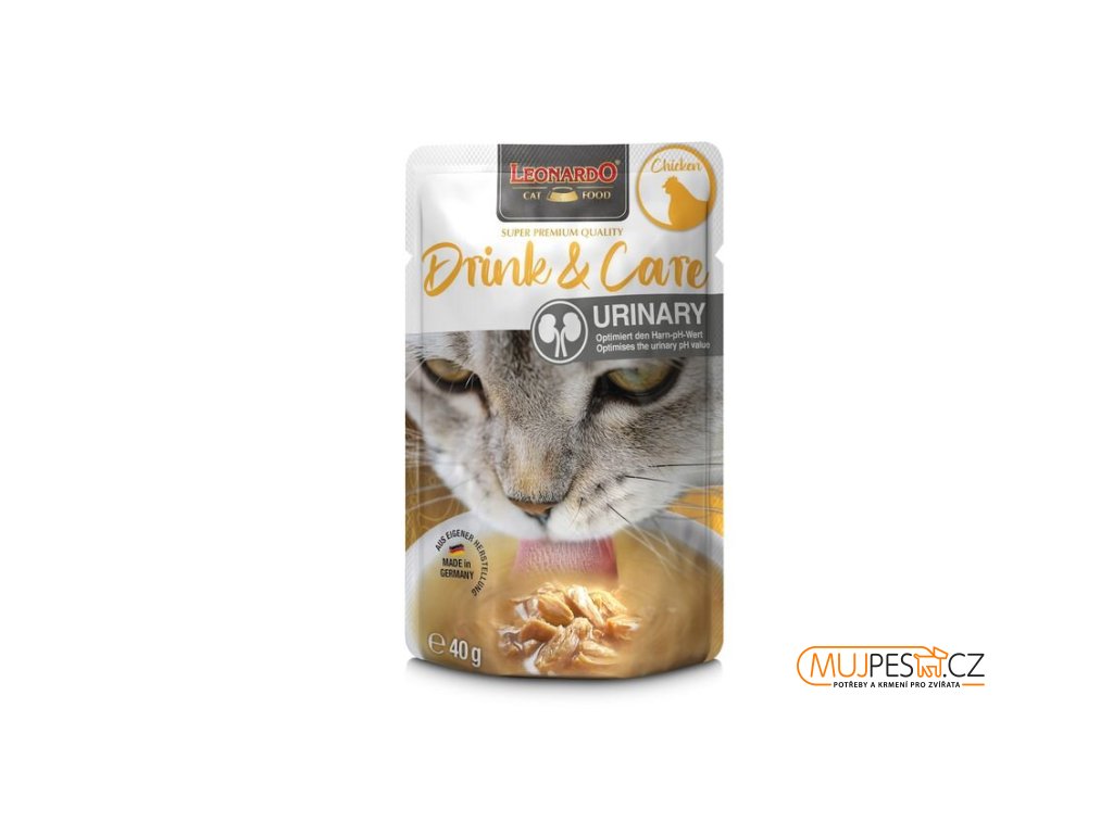 Dopřejte své kočičce kapsičku Leonardo Drink Urinary. Zvýšený příjem tekutin je prevencí před tvorbou kamenů v močovém ústrojí a tato kapsička obsahuje navíc taurin i DL - Methionin. Vývar v kapsičce kočičkám chutná, obsahuje kousky kuřecího masíčka a jejich organismus hydratuje.