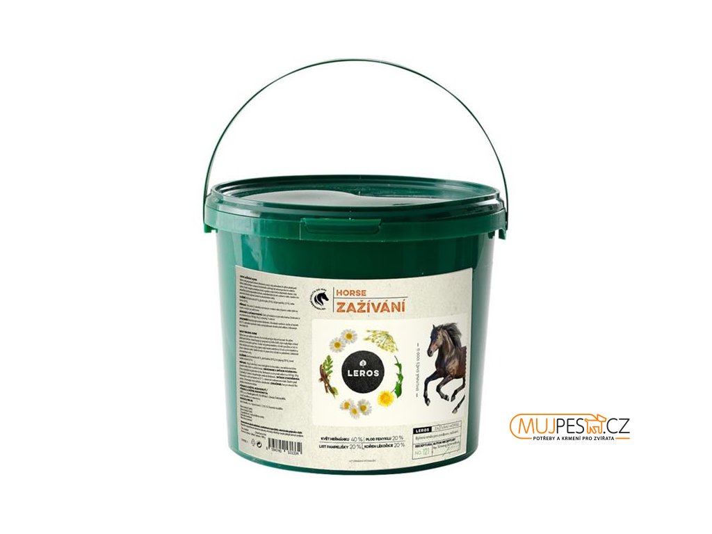 Bylinná směs Horse Zažívání je sestavená pro podporu zažívání koní. Heřmánek pravý je silný antioxidant, ve výživě působí pozitivně při kolikách a působí podpůrně během pooperační léčby kolik. Fenykl zmírňuje nadýmání, křeče a plynatost. List pampelišky a kořen lékořice přispívají ke správné funkci jater. Lékořice navíc působí proti tvorbě žaludečních vředů. Čistě přírodní složení bez obsahu konzervantů, lepku a umělých sladidel.