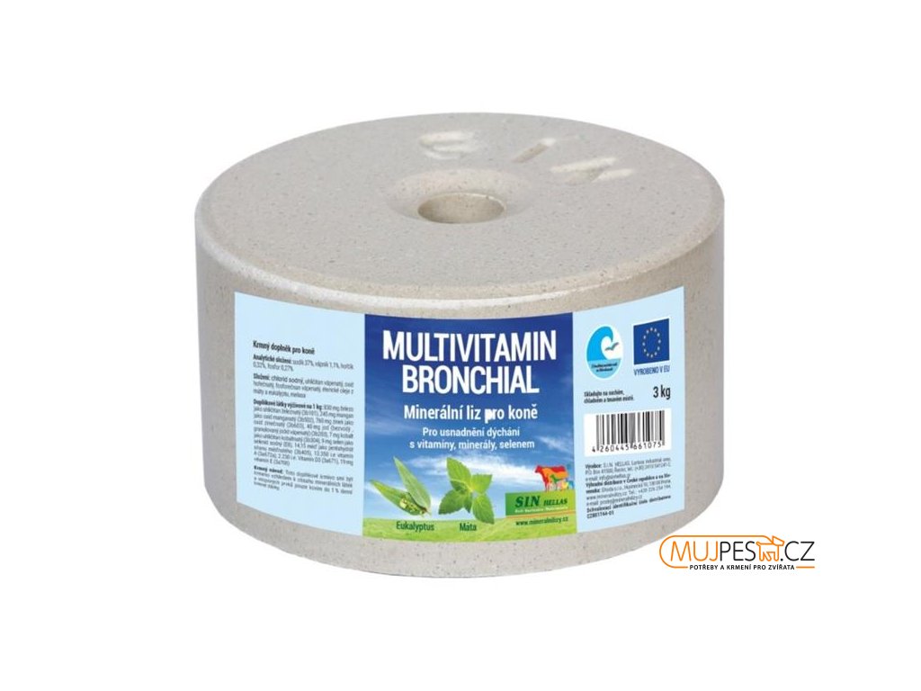 Minerální krmný doplněk pro koně - minerální multivitaminový liz pro koně s éterickými oleji z máty a eukalyptu na uvolnění dýchacích cest.