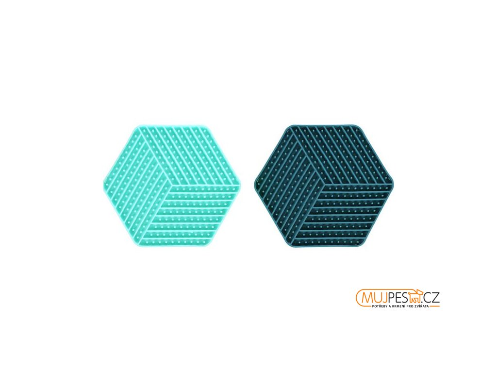 Lízací podložka Flamingo Leki Hexagon je ideální jak pro štěňata a koťata, tak pro dospělé a starší kočky a psy. Je vyrobená z pružné termoplastické gumy s protiskluzovým dnem a lze ji natřít pastou či vlhkým krmivem. Lízací podložka zabraňuje hltání, masíruje jazyk, zvyšuje proslinění potravy a může zvíře zabavit při procedurách, které nerado podstupuje, jako je např. česání. Chcete-li krmení ještě prodloužit, můžete podložku naplněnou krmivem zamrazit.