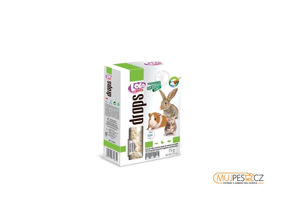 LOLO dropsy mléčno-medové pro hlodavce 75 g