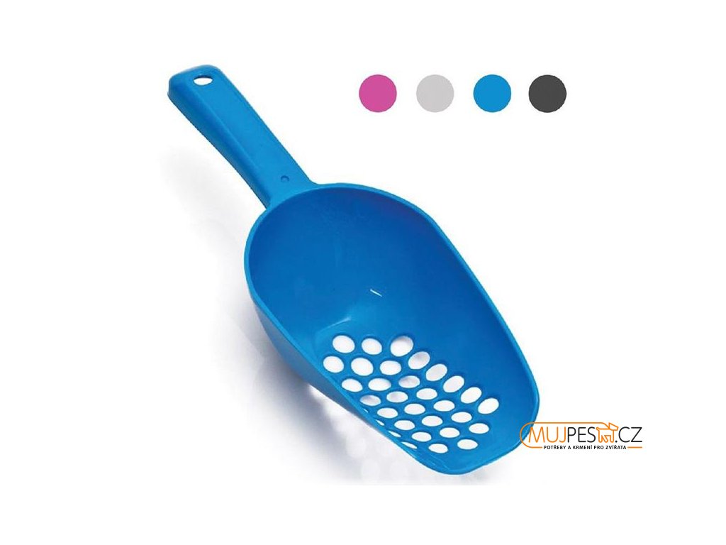 Praktická plastová lopatka určená k odstranění exkrementů z kočičí toalety.