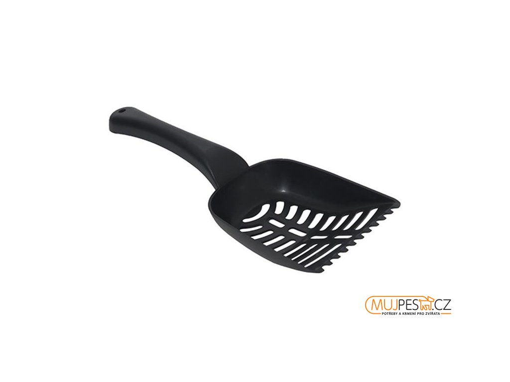 Praktická plastová lopatka k odstraňování trusu z kočičích toalet. Široký okraj lopatky umožňuje snadné vyjmutí nečistot z podestýlky.