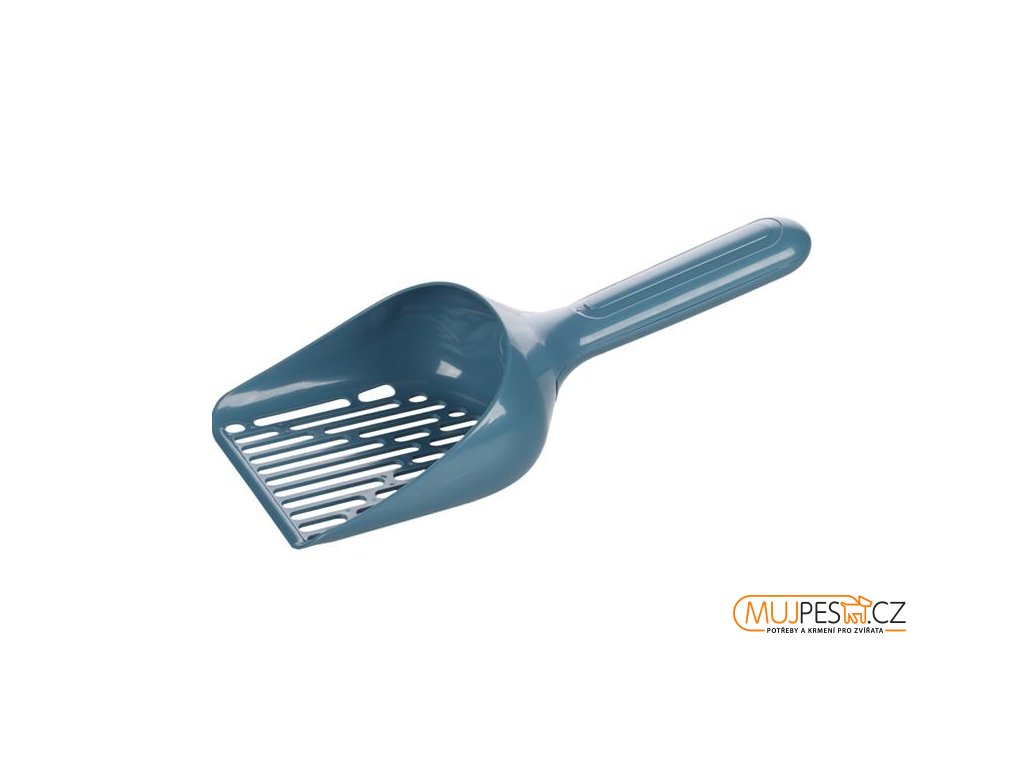 Praktická lopatka slouží k odstraňování trusu z kočičích toalet. Má pevné hranaté okraje. Vysoký a zahnutý zadní okraj zabraňuje kontaktu s trusem.