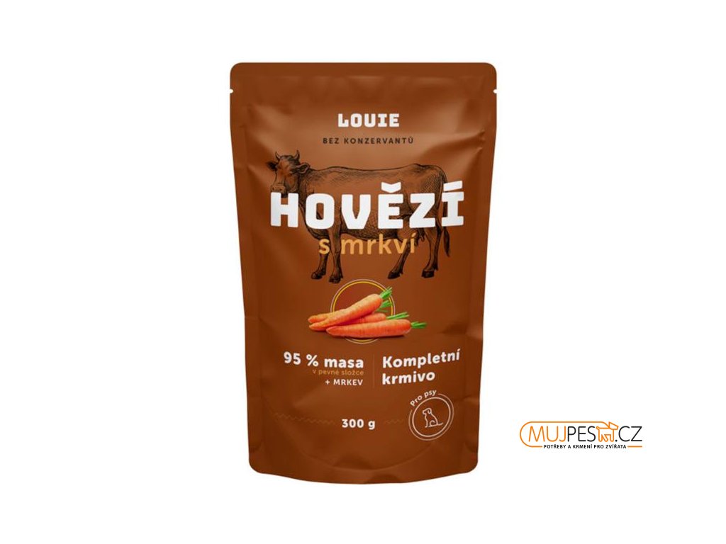 Šťavnaté kompletní krmivo v kapsičce obsahuje 95 % mletého hovězího masa v pevné složce a 5 % rostlinné složky, která supluje obsah žaludku býložravé kořisti ve volné přírodě. Mrkev dodává psům potřebné živiny a minerály a postará se o vstřebání šťávy, kterou maso během tepelné sterilizace uvolnilo.