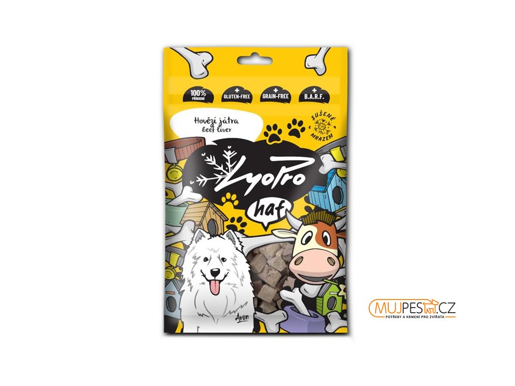 Křehká hovězí játra si díky šetrnému sušení mrazem (lyofilizaci) zachovávají své aroma, strukturu i plnou chuť, kterou psi milují. Jde o ideální volbu pro BARF (krmení syrovou stravou), psí alergiky a celiaky. Další výhodou sušení mrazem je dlouhá trvanlivost. Pamlsky se vyrábějí z čerstvých hovězích jater, která jsou jedním z nejlepších zdrojů vitamínů a minerálů. Obsahují až 100× více živin než svalovina! Při sušení mrazem navíc nedochází ke znehodnocení těchto živin. Jde tak o zdravou, lehkou a vysoce výživnou odměnu bez přidané chemie, obilnin, konzervantů a jiných balastních látek.