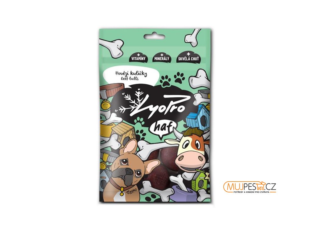 Křehké hovězí pamlsky ve formě kuliček obsahují 77,5 % poctivého hovězího masa, které je doplněné o rostlinné bílkoviny s vitamíny a minerály. Jde o nutričně vyváženou svačinu nebo odměnu pro psa při tréninku.