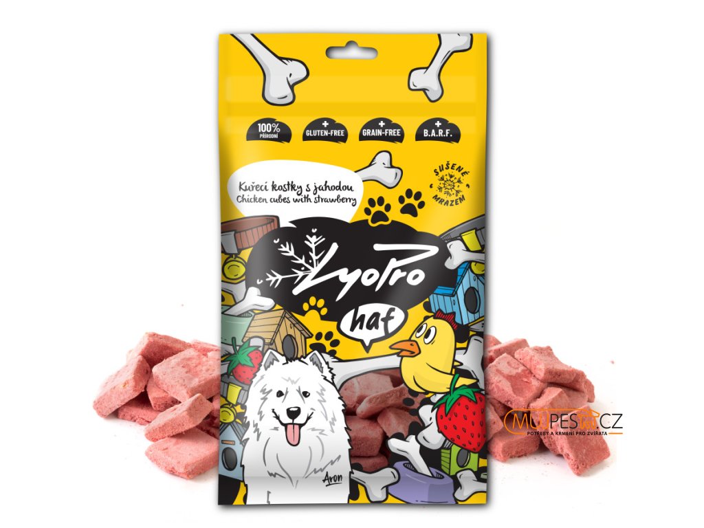 Lyopro haf poch. mrazem sušené Kuř. kostky s jah. 50g