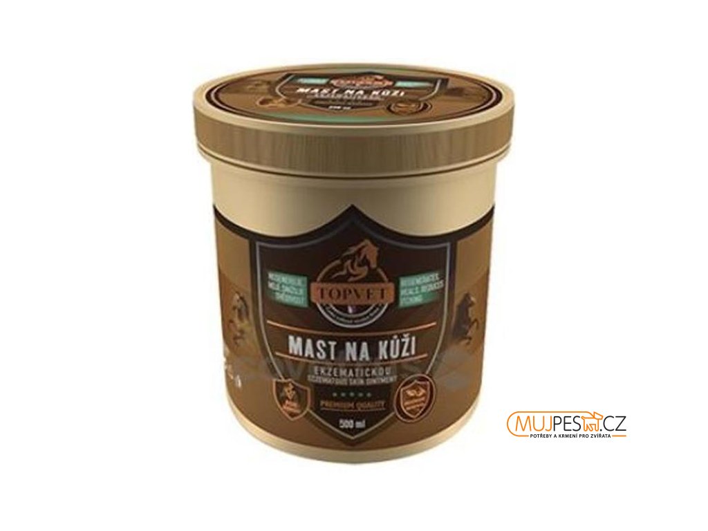 Mast na ekzematickou kůži je určena pro koně s kožními problémy. Originální receptura pokožku vyživuje, hydratuje a chrání před vnějším prostředím. Bylinná kompozice pokožku zvláčňuje, snižuje svědivost a obnovuje elasticitu. Je vhodná na rozškrábanou pokožku pro koně s letní vyrážkou. Mast vykazuje dlouhodobý účinek.