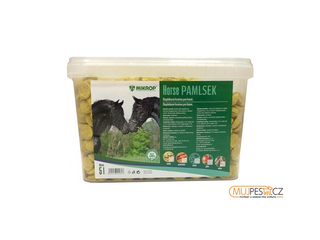 Pamlsek - krmný doplněk - snadno stravitelný. Velmi chutná pochoutka pro všechny kategorie koní. Příchuť jablko. Díky vysokému obsahu tuku vhodné pro i koně v zátěži. Vhodné pro březí klisny před hřebením, v období přelínání srsti apod. Působí dieteticky a velmi příznivě na činnost trávícího traktu.