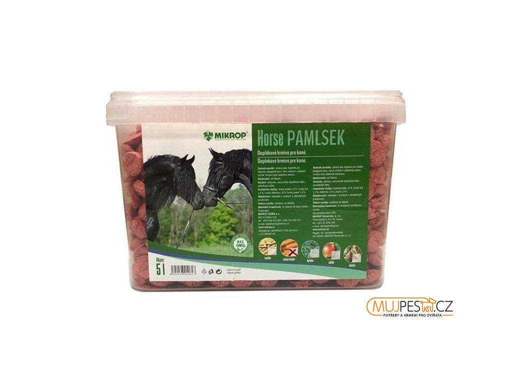 Pamlsek - krmný doplněk - snadno stravitelný. Velmi chutná pochoutka pro všechny kategorie koní. Příchuť mrkev. Díky vysokému obsahu tuku vhodné pro i koně v zátěži. Vhodné pro březí klisny před hřebením, v období přelínání srsti apod. Působí dieteticky a velmi příznivě na činnost trávícího traktu.