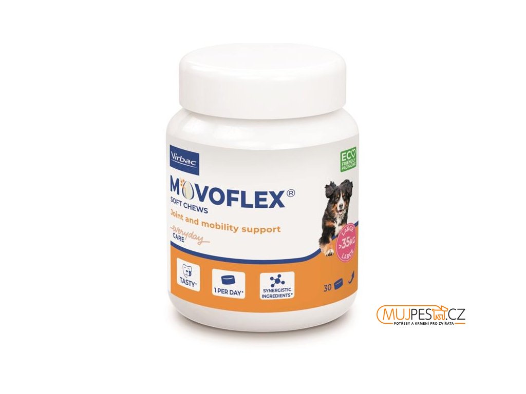 MOVOFLEX® Soft Chews mají výjimečné složení vzájemně synergických, vysoce kvalitních složek, které pomáhají udržovat zdraví a pohyblivost kloubů u psů všech věkových kategorií.