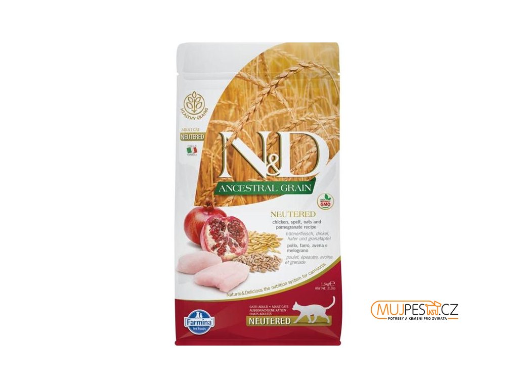 N&D ANCESTRAL GRAIN Cat LG Chicken, Spelt, Oats & Pomegranate Neutered Adult 10 kg