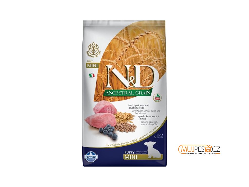 N&D ANCESTRAL GRAIN Dog LG Lamb, Spelt, Oats & Blueberry Puppy Mini 2,5 kg