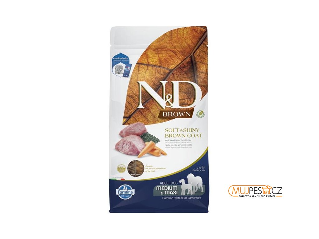 N&D BROWN Dog GF Lamb, Spirulina & Carrot Adult Medium & Maxi 2 kg