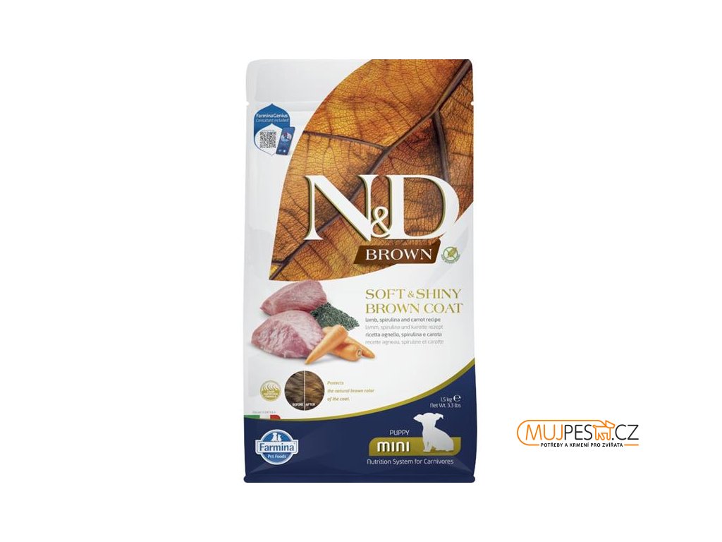 N&D BROWN Dog GF Lamb, Spirulina & Carrot Puppy Mini 1,5 kg