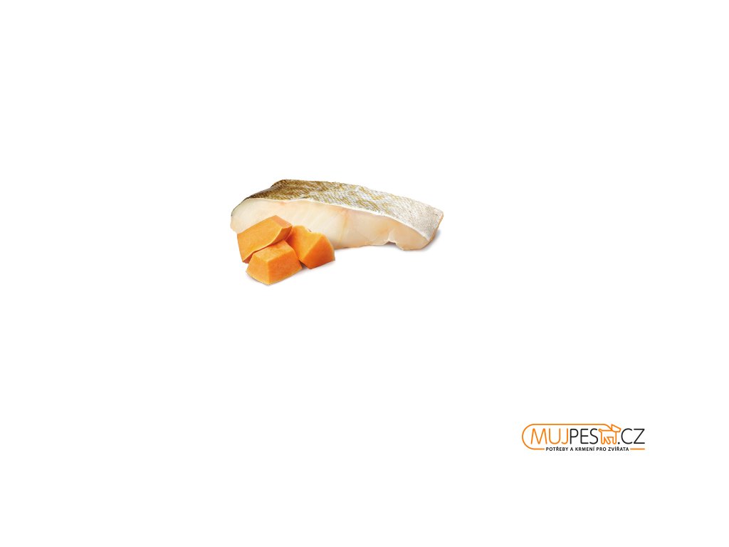 Složení: filet z tresky (60 %), sleď, filet z lososa, batáty, dýně (5 %), rybí olej, krevety, fruktooligosacharidy, cholin chlorid, chondroitin sulfát, glukosamin, vitamíny, minerály