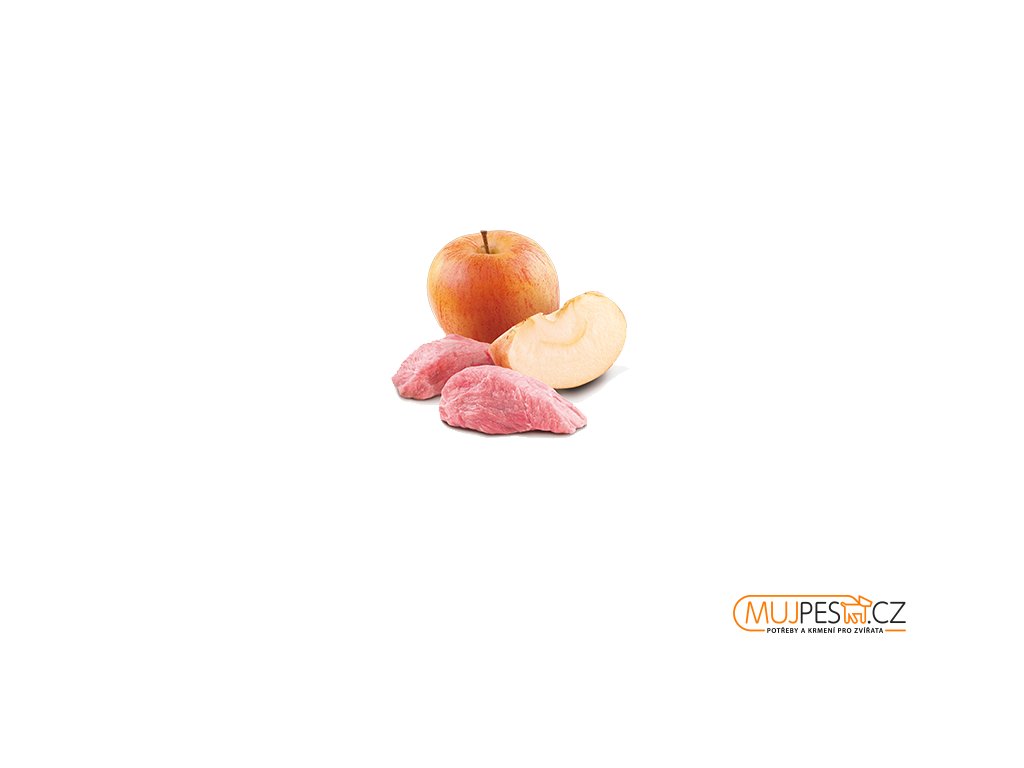 Složení: divočák (45 %), sleď, batáty, vařená vejce, rybí olej, jablko (2 %), fruktooligosacharidy, cholin chlorid, chondroitin sulfát, glukosamin, vitamíny, minerály.