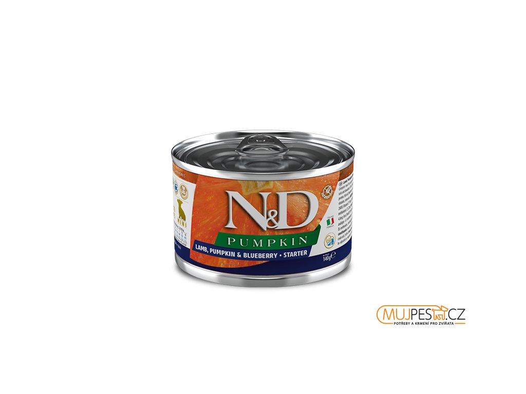 N&D DOG PUMPKIN Starter Lamb & Blueberry Mini 140g + 140g ZDARMA