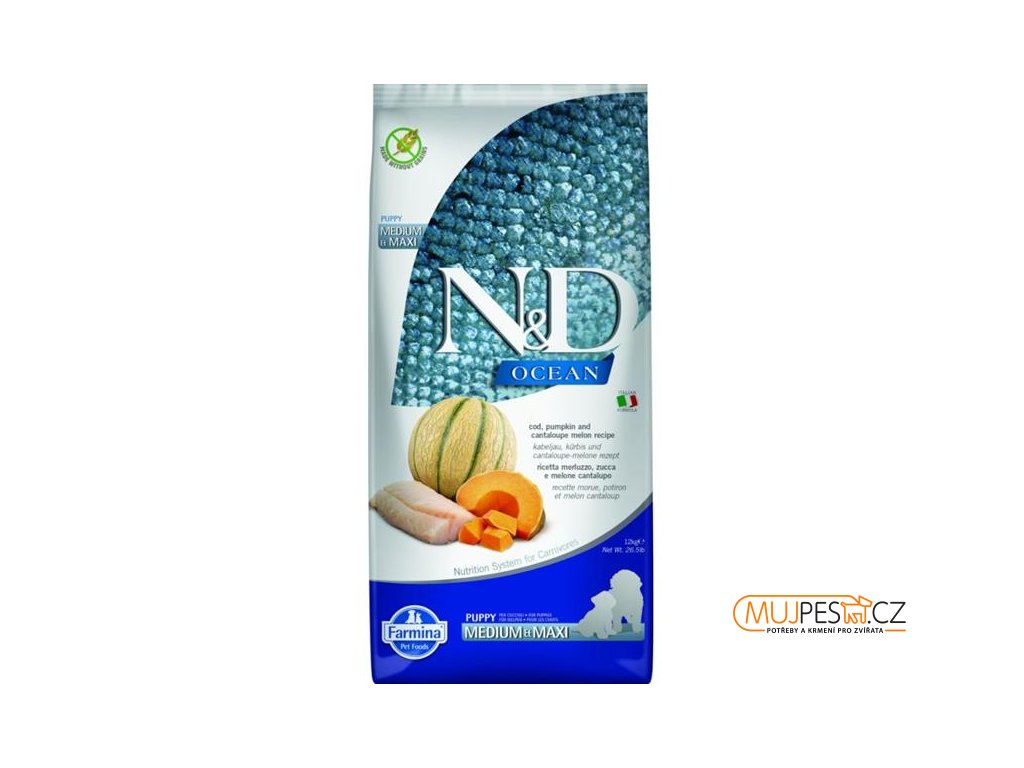 N&D OCEAN Dog GF Cod, Pumpkin & Cantaloupe Melon Puppy Medium & Maxi 12 kg