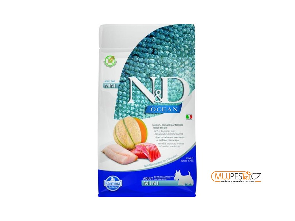 N&D OCEAN Dog GF Salmon, Cod & Cantaloupe Melon Adult Mini 800 g