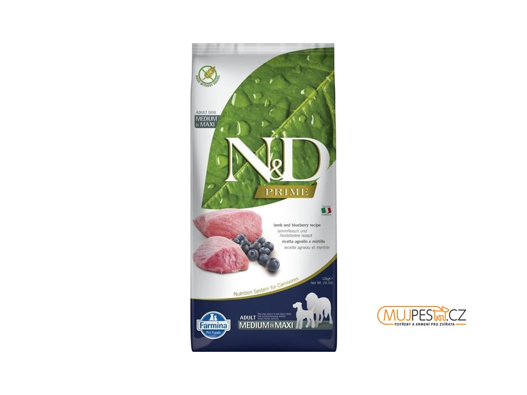 N&D PRIME Dog GF Lamb & Blueberry Adult Medium & Maxi 12 kg
