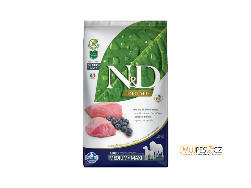 N&D PRIME Dog GF Lamb & Blueberry Adult Medium & Maxi 2,5 kg