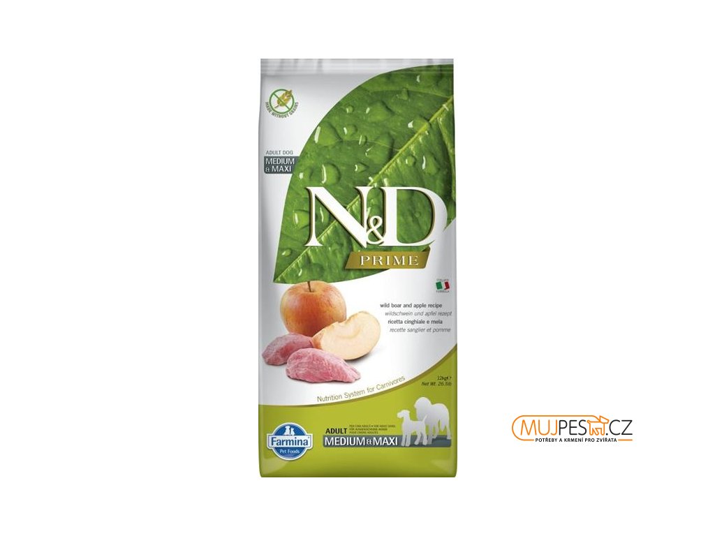 N&D PRIME Dog GF Wild Boar & Apple Adult Medium & Maxi 12 kg