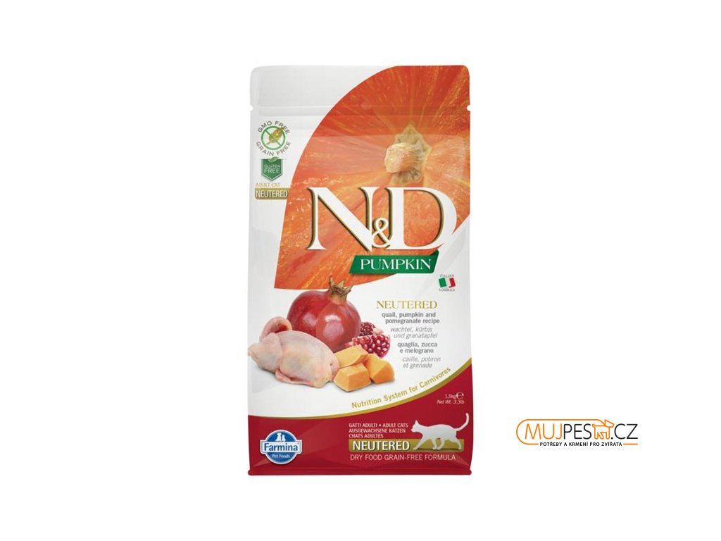 N&D PUMPKIN Cat GF Quail & Pomegranate Neutered Adult 1,5 kg
