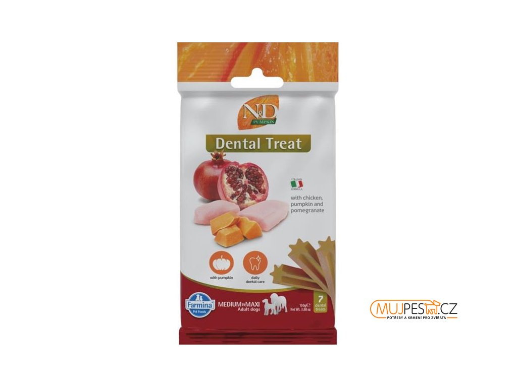 Kolem 80 % dospělých psů čelí problémům v dutině ústní. Parodontální onemocnění je navíc spojeno s vyšším rizikem srdečních a ledvinových problémů. Předcházejte těmto potížím s pomocí dentálních tyčinek N&D Pumpkin Dental Treat určených pro psy a štěňata (od 4 měsíců) středních a velkých plemen. Dýně je bohatá na betakaroteny a přírodní antioxidanty, chrání kardiovaskulární systém a podporuje imunitní systém a správnou motilitu střev.