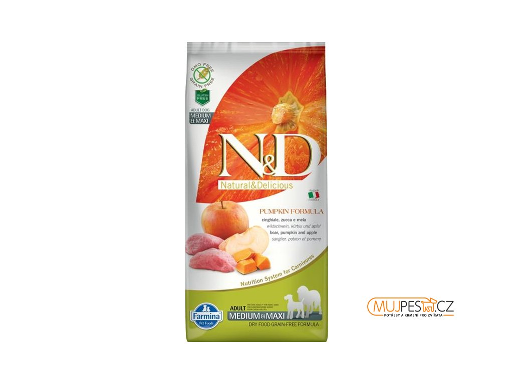 N&D PUMPKIN Dog GF Wild Boar & Apple Adult Medium & Maxi 12 kg