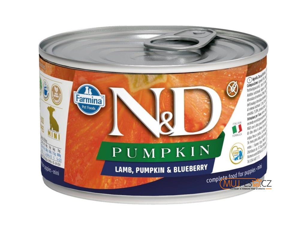 N&D PUMPKIN Dog konz. Lamb, Pumpkin & Blueberry Puppy Mini 140 g