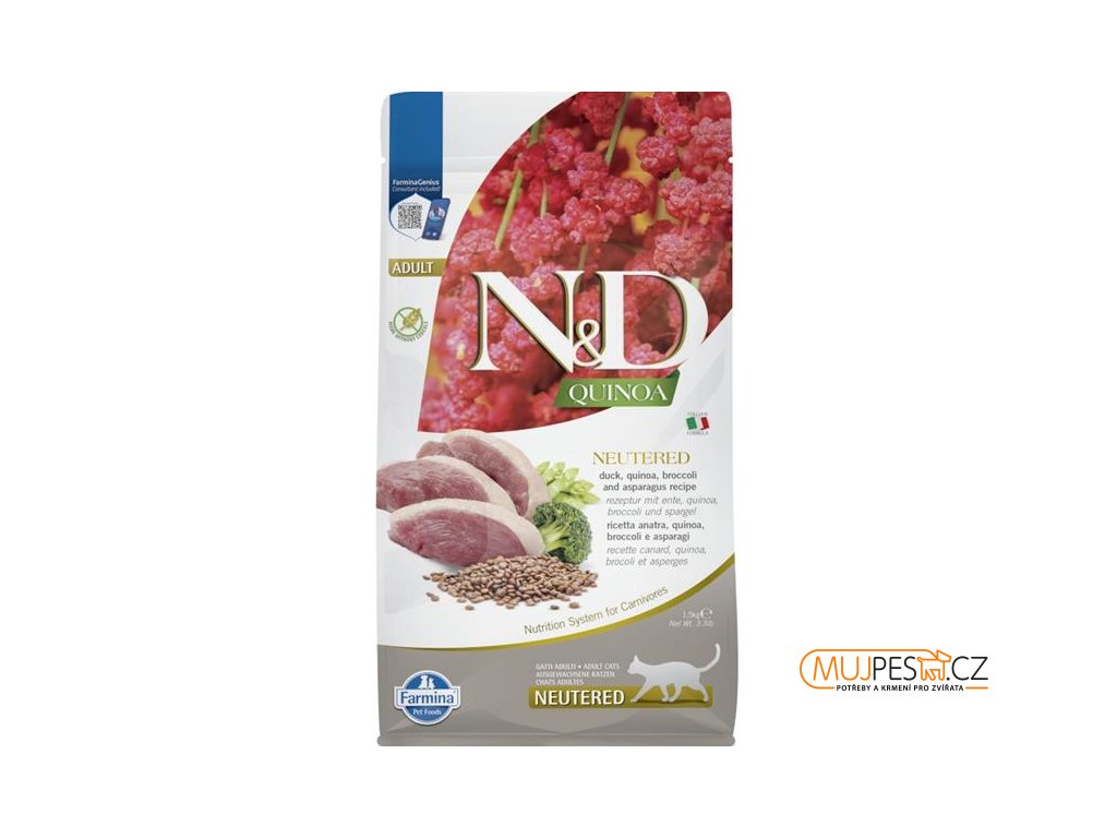 N&D QUINOA Cat GF Duck, Broccoli & Asparagus Neutered Adult 1,5 kg