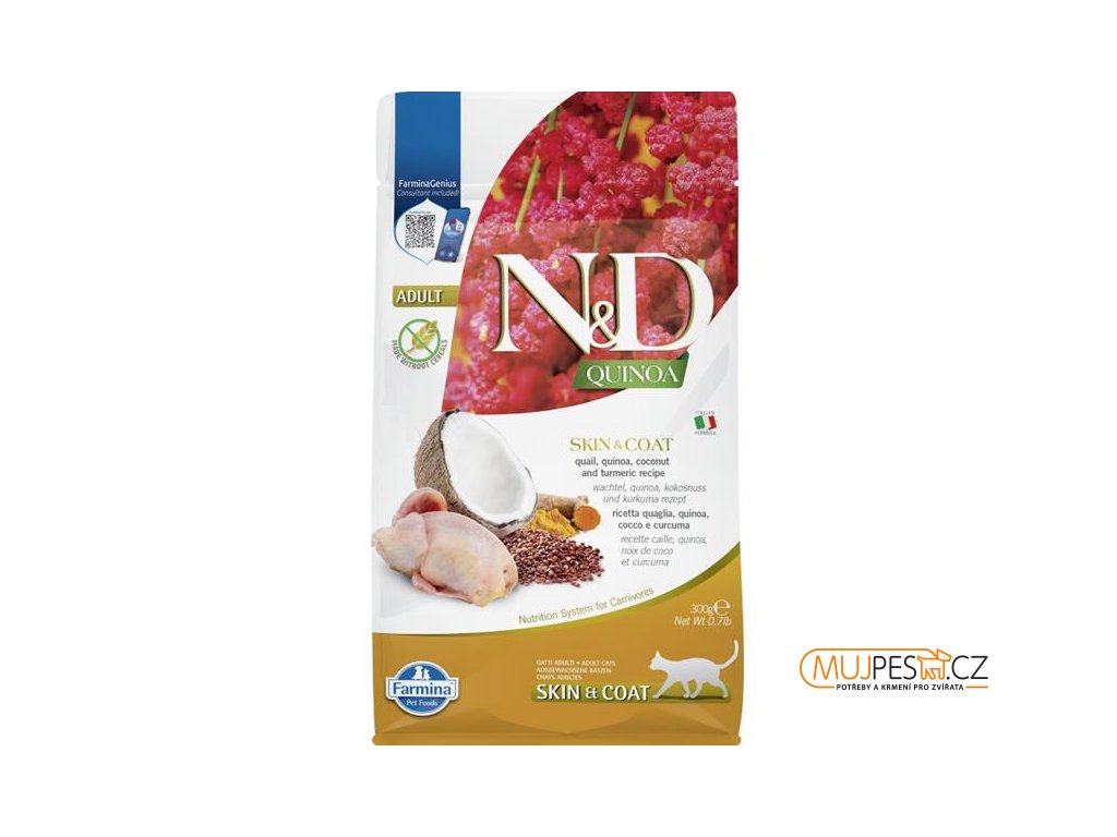 N&D QUINOA Cat GF Skin & Coat, Quail & Coconut Adult 300 g