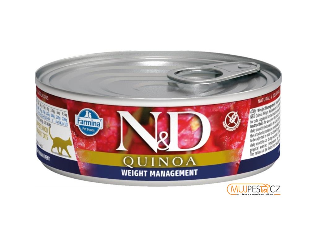 Farmina N&D Quinoa Weight Management je krmivo pro zvláštní účely výživy určené ke snížení nadměrné tělesné váhy.