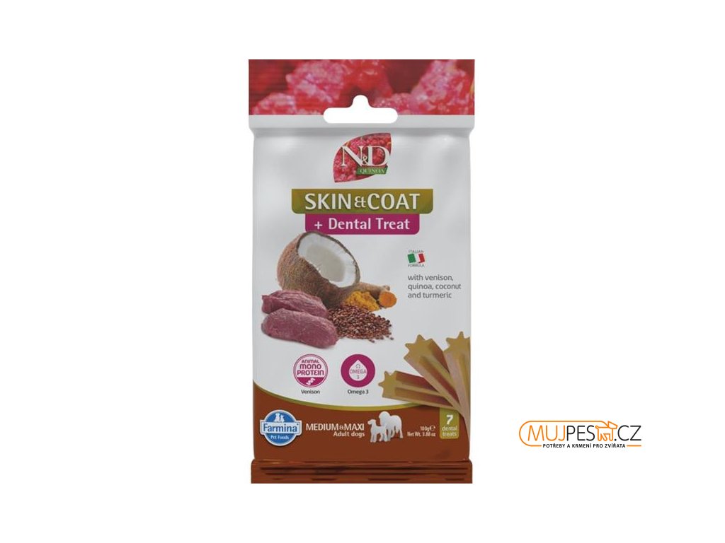 N&D QUINOA Dog Dental Snack Skin & Coat Venison Medium & Maxi 100 g