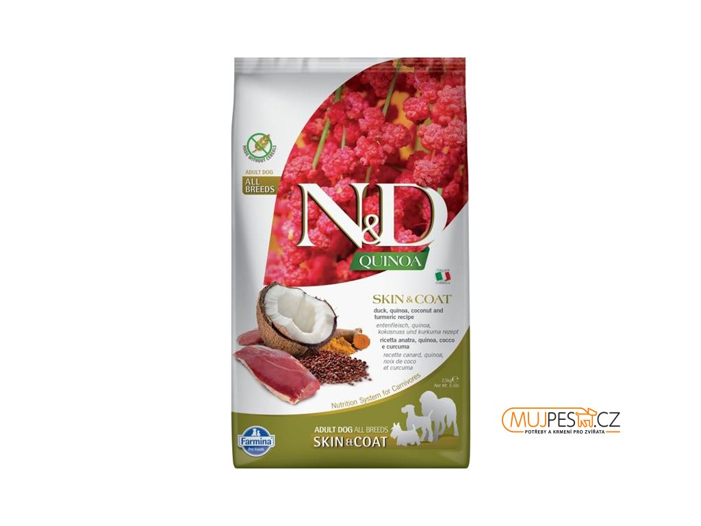 N&D QUINOA Dog GF Skin & Coat, Duck & Coconut Adult All Breeds 2,5 kg
